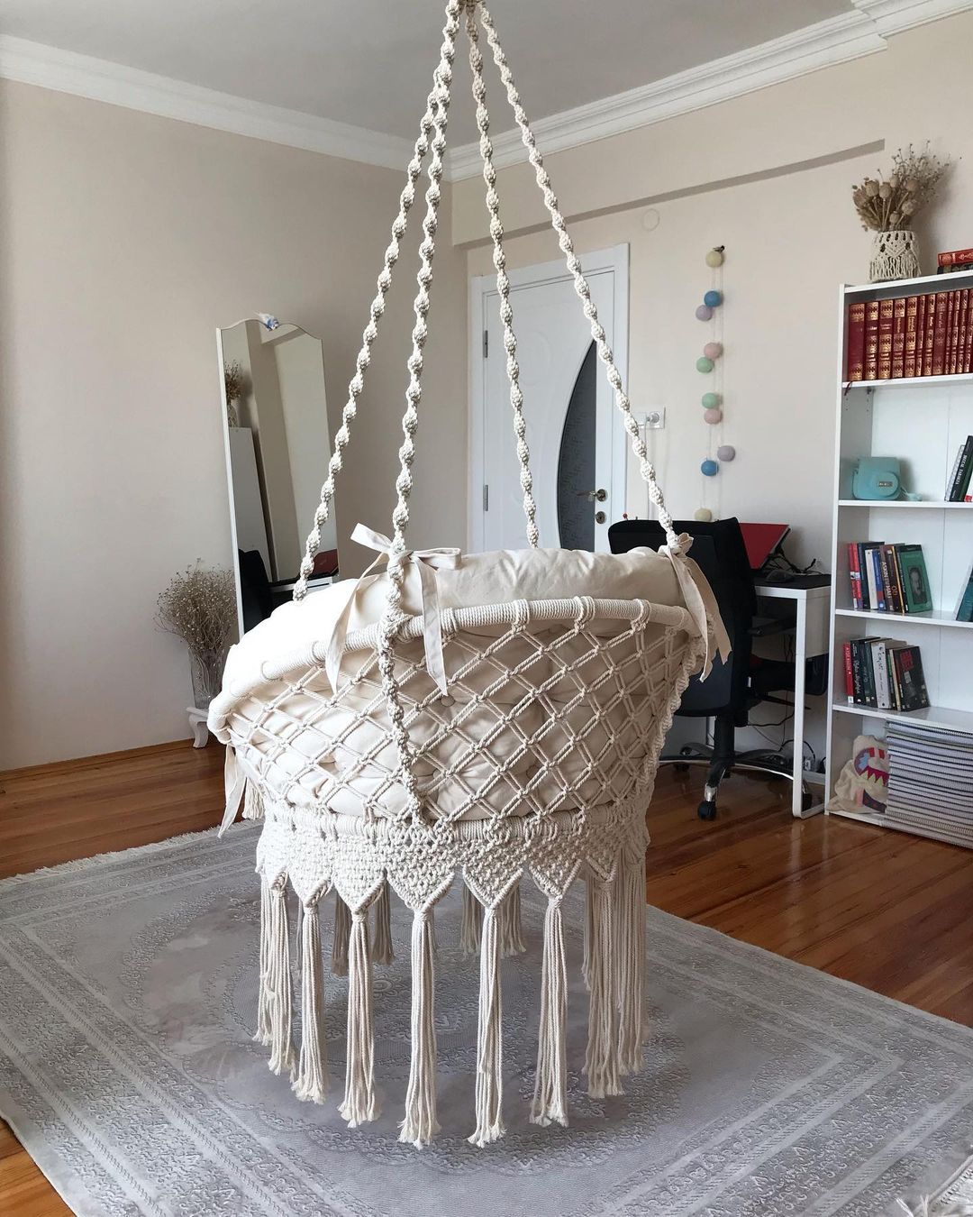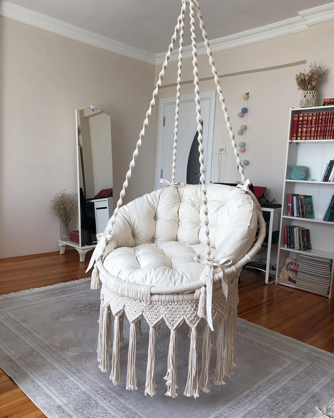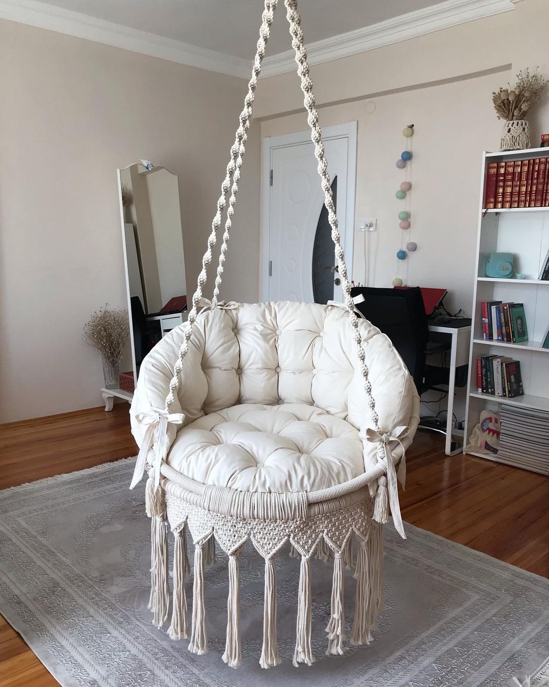 This 100% cotton macrame hammock chair is made with macrame technique. Perfect bohemian decor for rustic rooms, this comfy & soft hammock lets you enjoy a book, coffee, meditation & more. Suitable for all ages, it's stylish & cozy. Can be hung almost anywhere & only takes minutes to set up. Portable & easy to store.