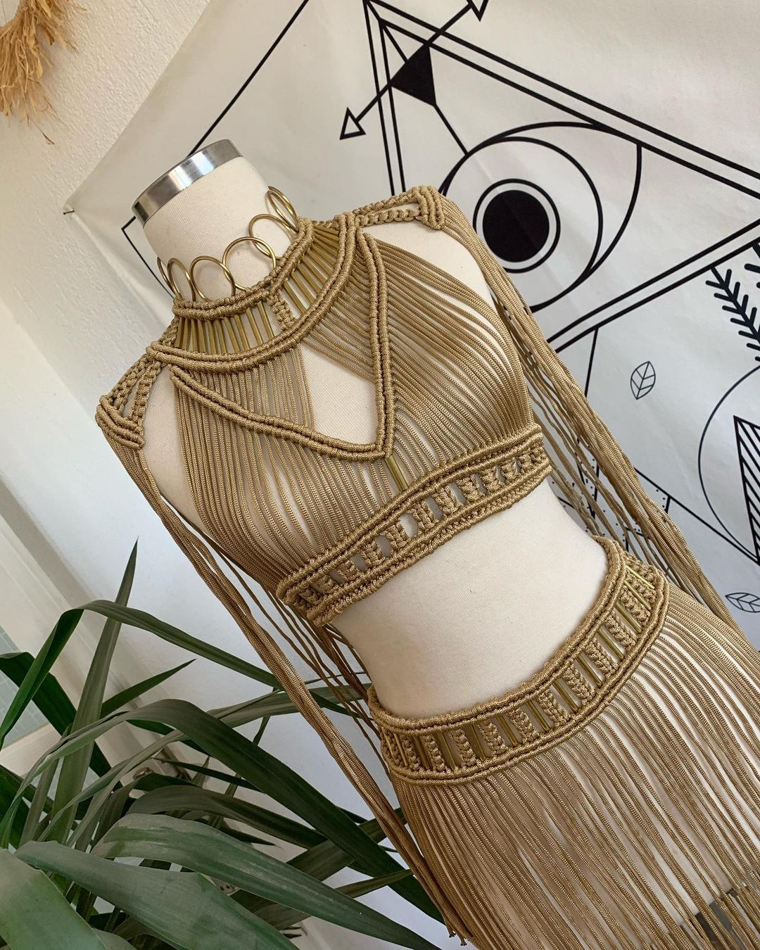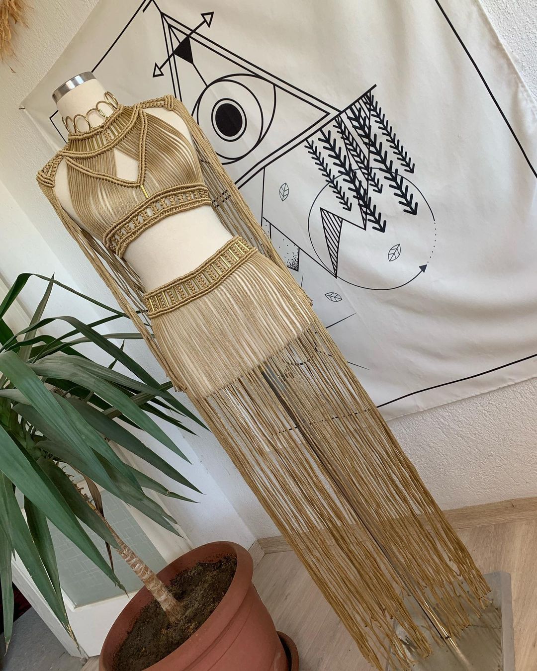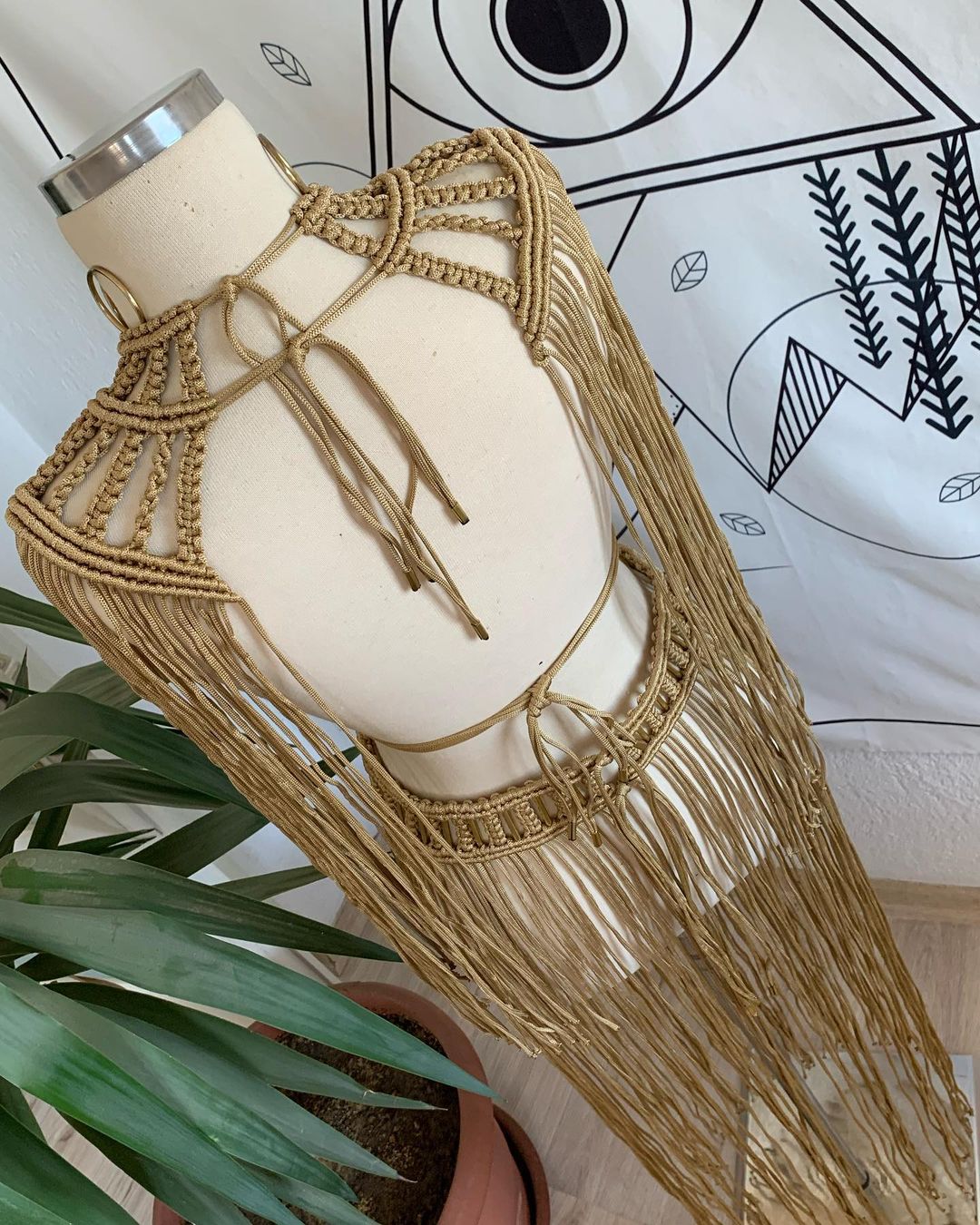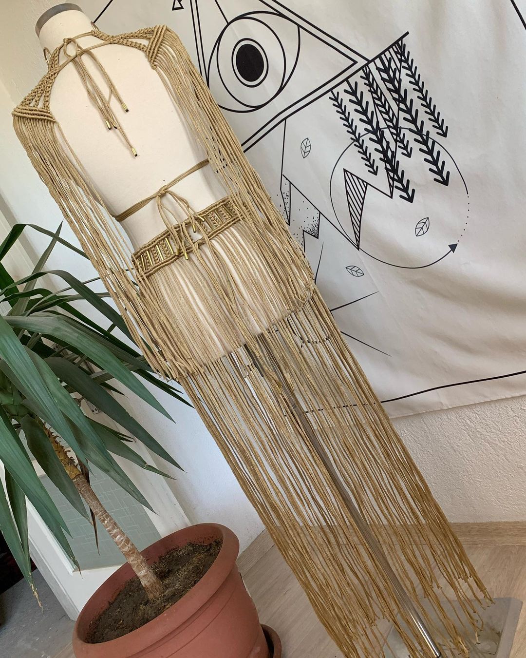 Dress is an elegant wear realized with traditional hand-knots art of macrame.